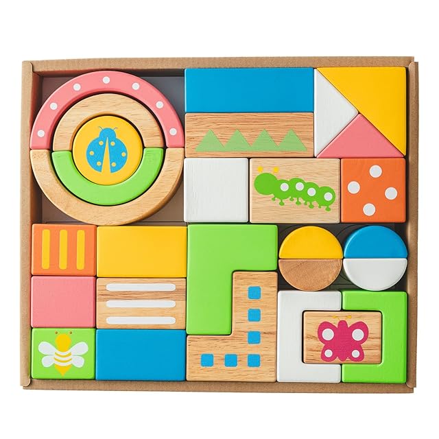 【対象年齢】10ヶ月~ 【内容】積み木パーツ×28ピース、木箱×1 【商品サイズ】 高5.7×幅31.5×奥26.5cm 重量:2350g【材質】ゴムの木 【生産国】中国