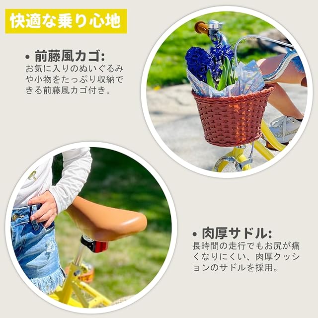 color:イエロー*藤風カゴ*補助輪 size:14インチ: