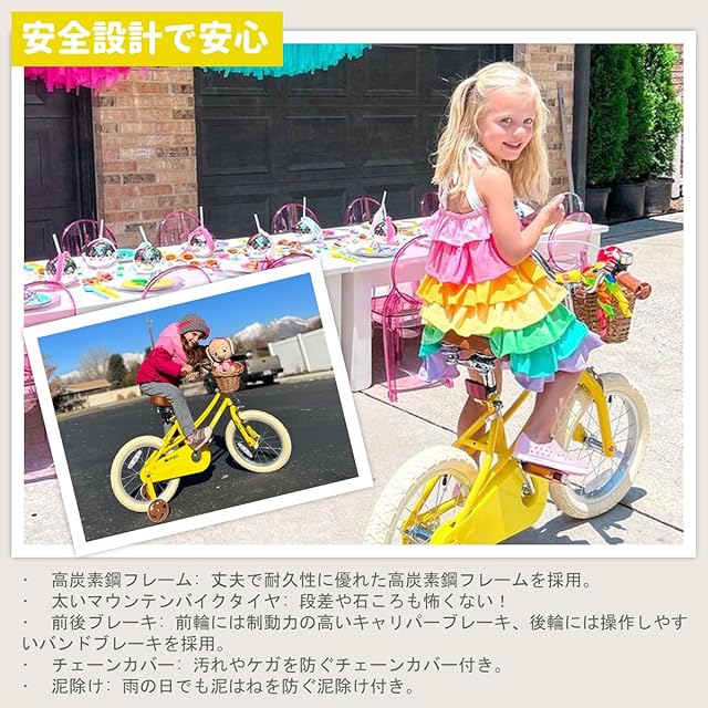 【推奨年齢・適応身長】12インチ:2~5歳、80~105㎝ 14インチ:4~7歳、90~120㎝ 16インチ:5~11歳、105~135㎝ 18インチ6~13歳、115~145cm。