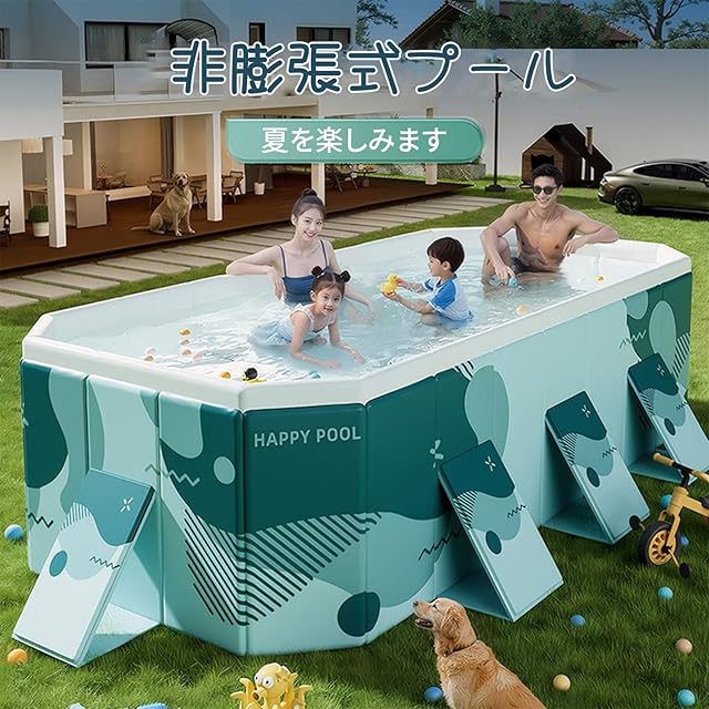 OMATA 【2025新改良 工場直売 非膨張式プール】新デザイン ビニールプール 空気入れ不要 大型 子供用 家庭用 長方形 折り畳み式 収納便利 1秒高速オープン 耐高温 耐摩擦 安全無毒 水遊び 猛暑対策 家庭用 屋内用 アウトドア用 大型 水遊び 簡単な排水 安心安全な 日本語説明書付き(内径253*133*51CM,外径295*165*51CM)