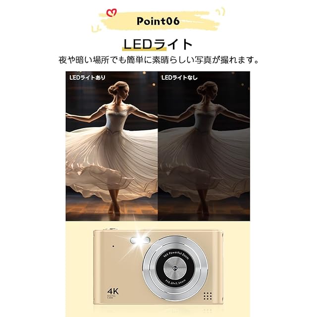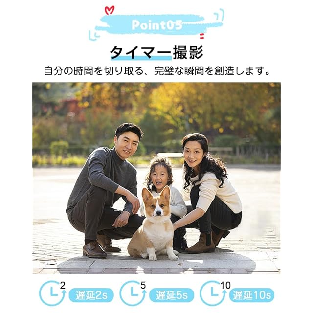 【初心者向けの多機能カメラ】:該当カメラは、笑顔キャッチャー、セルフタイマー、連写、顔検出など、初心者向けの撮影機能付き、自撮り写真を撮るにはすごく便利です。 三脚も対応可能で、一人でも思い出の瞬間を美しく記録できます。また、ウェブカメラ機能はあり、付属のUSBケーブルを使って、カメラとコンピュターに接続するだけで、オンライン授業、ビデオ通話、リモート会議、ライブなど様々なシーンで使えます。 この多機能カメラは、 様々のシーンで最大限に活用でき、カメラの可能性を広げます。