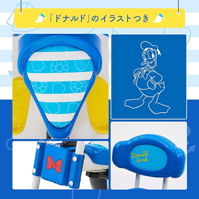 【公式EC限定】アイデス ディズニー 三輪車 ドナルド 足乗せステップ&安心ガード 手押し棒付き SG基準合格 1.5歳~4歳