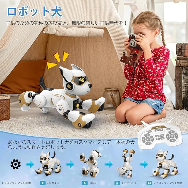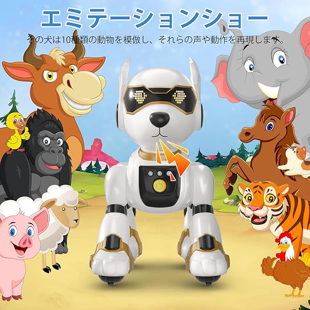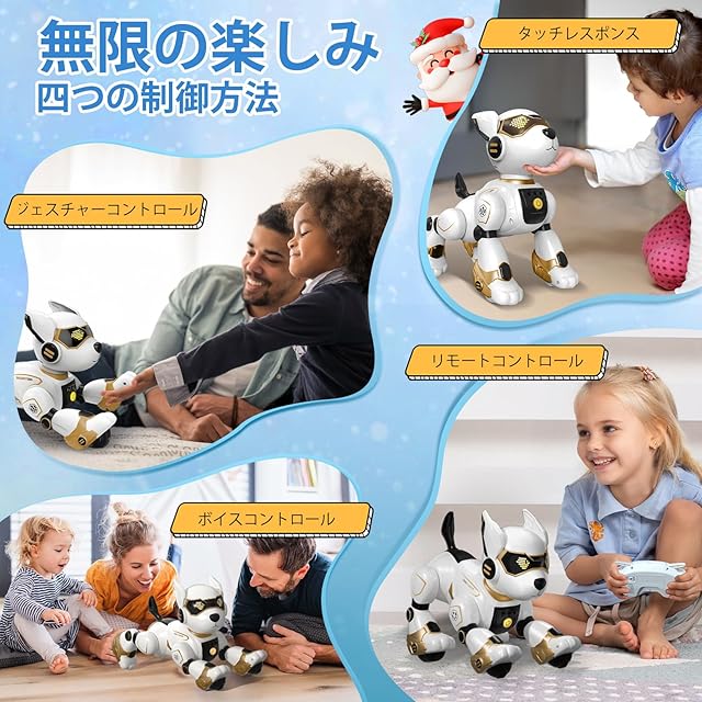 ロボット犬 リモコン おもちゃ【2024年新登場】電子ペットロボット 手振り制御 音声制御 (英語のみ) リモコン遠隔操縦 タッチコントロール 犬 ロボット 子供おもちゃ人気 動物の声真似 プログラム可能 音楽演奏 動く犬のおもちゃ USB充電可能 音量調整可能 男の子 女の子 高齢者 小学生 誕生日 クリスマス プレゼント