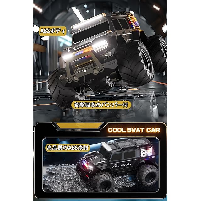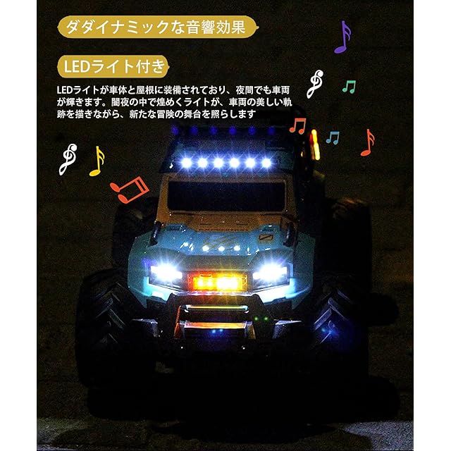 【優れたアンチクラッシュと滑り止めタイヤ】 4輪は滑り止めタイヤと衝撃吸収材を詰め込んでおり、予想外の落下や地面の不安定な表面をサポートしています。ボディーの前部は、体とフレームを効果的に保護するために、反衝突車バンパーを備えています。それは、ビーチ、砂、岩やコンクリート道路のようなすべての地形でRCカーを運転することができます。