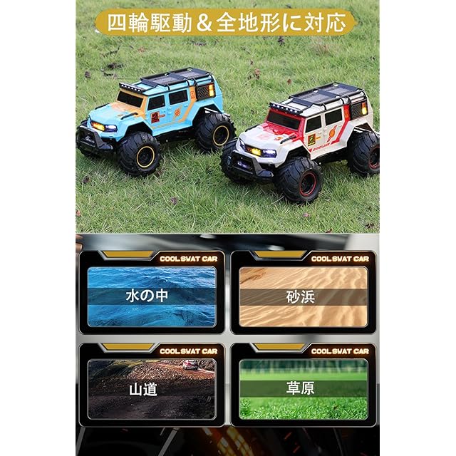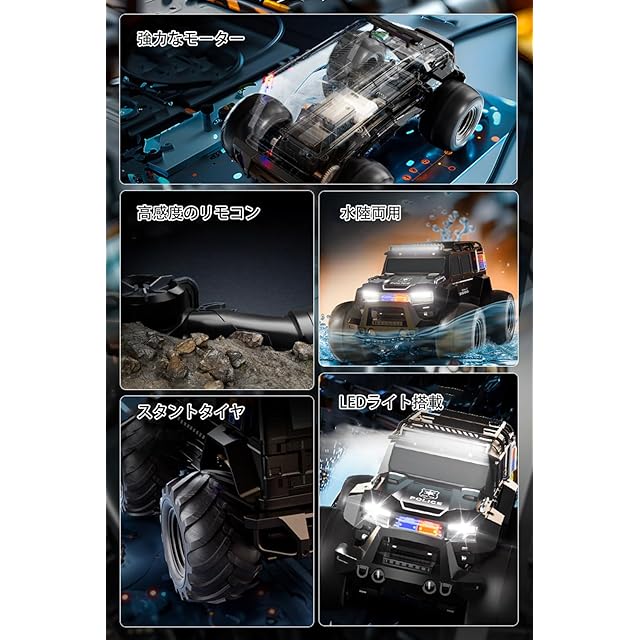 【ラジコン 水陸両用&革新的なリモコンカー】このラジコンカーは陸上だけでなく、水中でもスムーズに走行することができます。特別に設計されたシールと浮力装置が装備されており、水中での安定性と浮力を確保しています。プール、湖、または浅水域など、さまざまな環境で楽しむことができる非常に興味深く多機能なおもちゃです。このおもちゃのラジコンカーは、さまざまなプレイスタイルやシーンに適しています。草地、ビーチ、水上公園、または自宅のプールで思い切り遊ぶことができます。