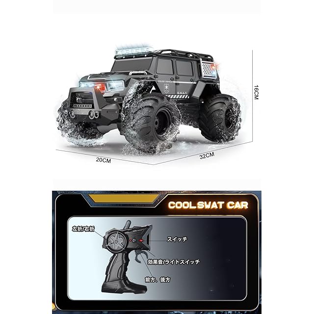 【2.4GHz無線リモコン、複数台で競技可能】 2.4 GHzの遠隔制御システムを装備していて、それは安定した信号を提供することができます。複数の車両が同時に再生するとき、それは信号干渉を防ぐことができます。コントロールの距離は土地で最大40m、水で20mまでです。それはあなたの子供と彼らの友人を一緒に共有することが可能にします。