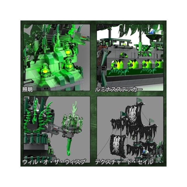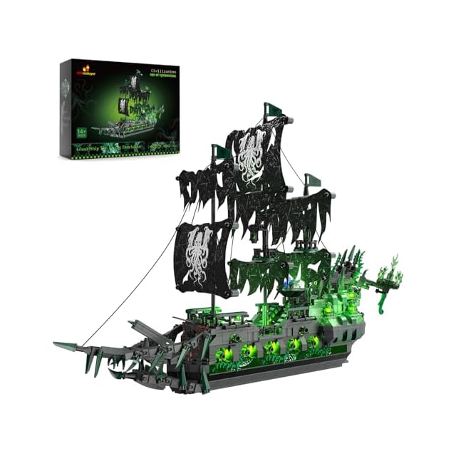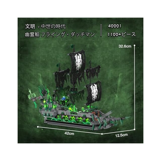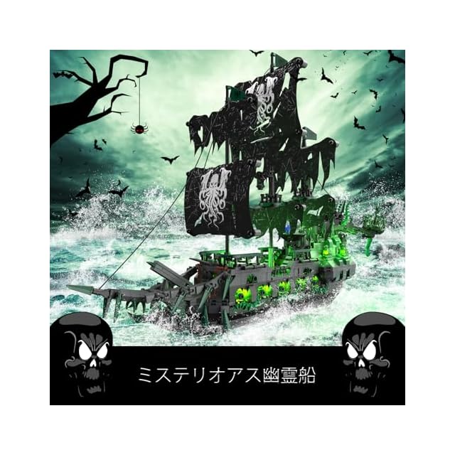 JMBricklayer 海賊船 ブロックセット ライト付き ゴーストシップ フライング・ダッチマン モデル船 40001 大人向け 海賊船模型 組み立て玩具 ハロウィン デコレーション 誕生日 クリスマス ギフト男の子 女の子 14歳以上 (1100ピース)