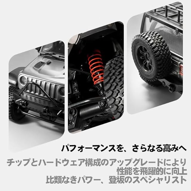 【4x4ミッドシップ駆動】悪路走破性を極限まで追求した本格的なオフローダーです。390強力磁石モーターを搭載、4x4ミッドシップ駆動方式により、最大20kgの牽引力を発揮し、卓越した登攀性能を実現します。