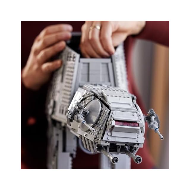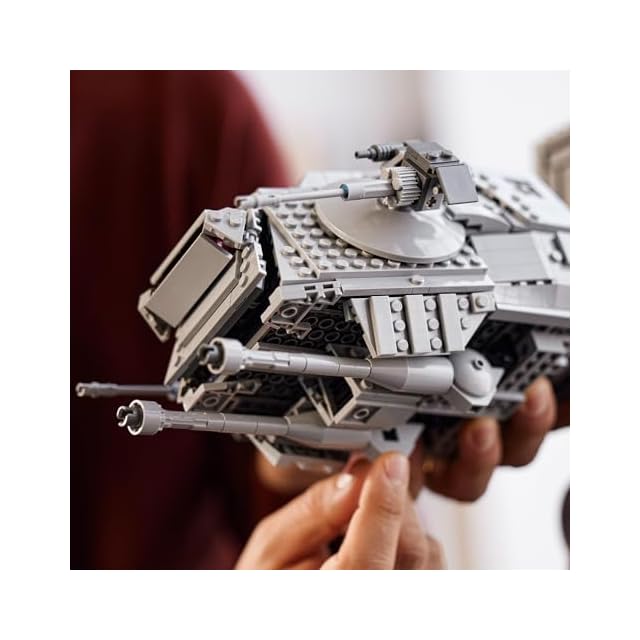 「AT-AT」のパネルを取り外し、内部にミニフィギュア40体とスピーダーバイク4台を格納できます。スピーダーバイク2台とEウェブ重連射式ブラスターが付属しています。