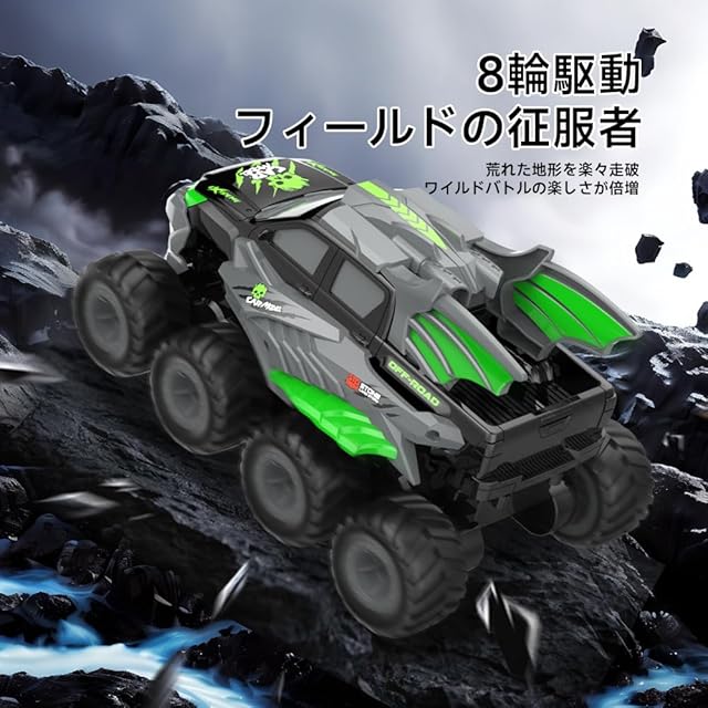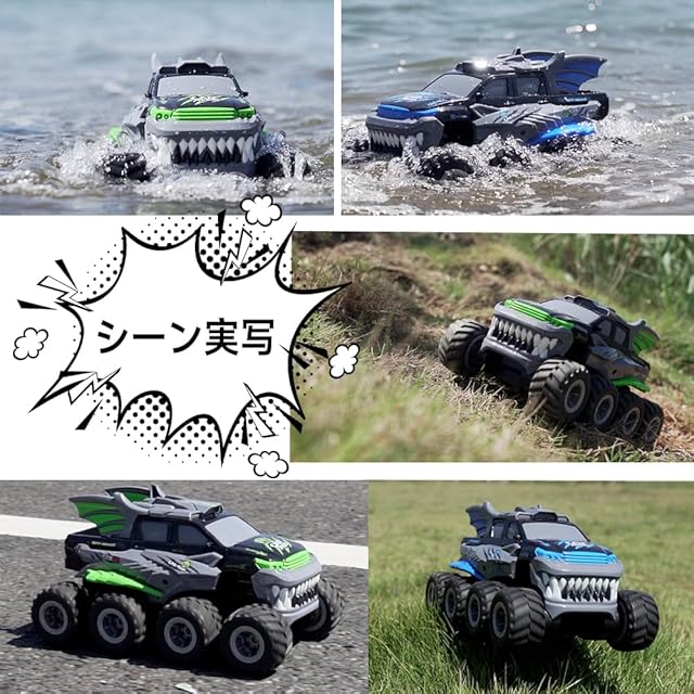 【水陸両用ラジコン 八輪駆動】:Ritaosanの8WDオフロードラジコンカーは、全身防水設計を採用しており、陸上での通常のラジコンカーの機能だけでなく、ラジコンボートのように水中でも使用できます。子ども たちの大好きな おもちゃ。正反両面とも完全に水中に浸かることができ、8つの高品質なソフトラバータイヤは浮力とパワーを提供します。2つの異なる使用モードで、お子様により豊かな遊び体験を提供します。 これは男の子、女の子、誕生日やお祭りの時に最適な贈り物です。