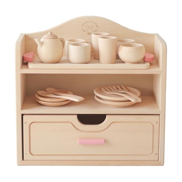 木製おもちゃのだいわ ミニままごとセット(ピンク) 食器棚 食器セット 食器は全て収納可能 ままごと おままごと ままごとセット 木製ままごと 食器セット 食器 食器棚 木のままごと ギフト用 プレゼント用 クリスマス 誕生日