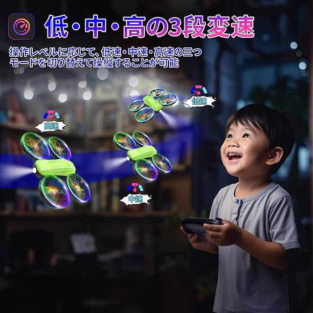 ✈【子供・初心者向け】手投げテイクオフ、ワッキー離陸/着陸、高度維持など、まだ送信機操縦に慣れていない初心者・子供にとって、簡単な操作でも機体を制御することができます。また、ヘッドレスモードも加えて、初めてドローンを操縦する方も直感的に操縦可能です。