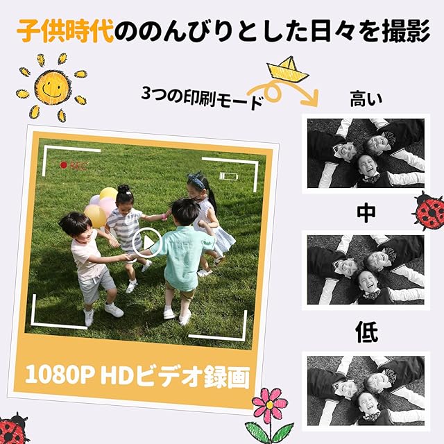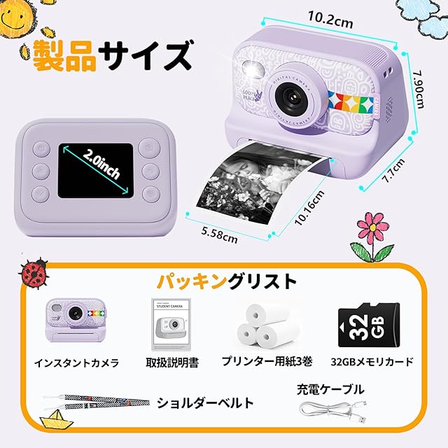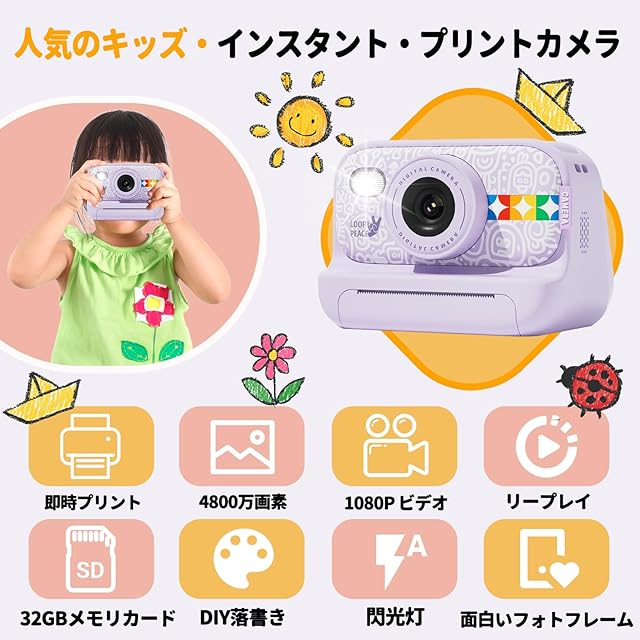 おもしろインスタント・プリント・カメラ: インスタント・カメラは、カラー写真を約8,000枚、モノクロ写真を50枚プリントできる。子どもたちの写真撮影のニーズに完璧に応え、瞬間をとらえる喜びや、最高に幸せな時間を共有する喜びを味わうことができる。さらに、プリントはDIY作品のキャンバスとして機能し、無限のインスピレーションを呼び起こす。コストパフォーマンスの高い選択です!