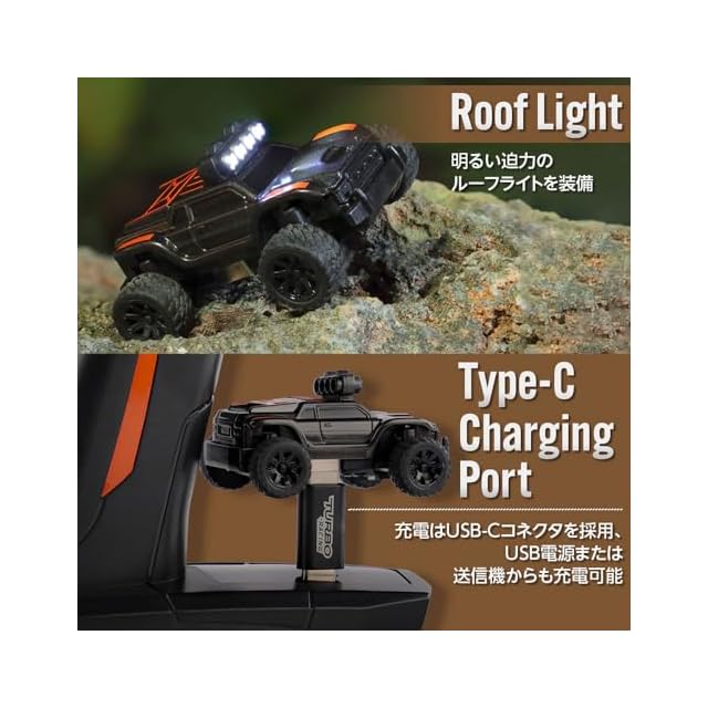 【日本正規品】ハイテック ターボレーシング C81-BK オフロードカー ブラック アフターサポート 2.4GHz技適認証 故障時交換補償 日本語説明書 30分連続走行 1/76 RC 送信機付き RTRフルセット プレゼント 誕生日 贈り物 小型 ミニラジコン C81-BK