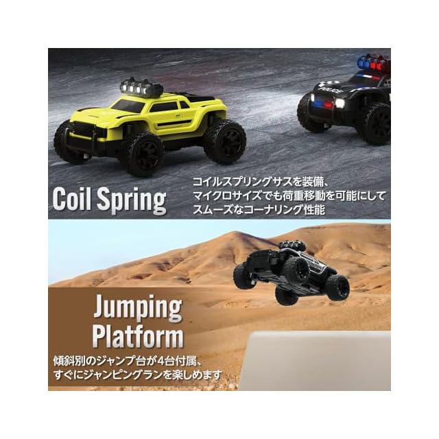 【アクロバティックな走行も楽しめる】 大口径タイヤを装備し、多少のギャップも気にせず力強い走りを実現。付属するジャンプ台を使えば、アクロバティックな走行も楽しめます。