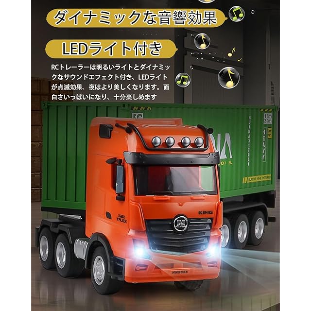 ラジコンカー こども向け コンテナトレーラー ラジコントレーラー RCカー 2.4GHz無線 LED搭載 ダイナミックな音響効果 室内遊び 男の子 誕生日 プレゼント 子供 贈り物【付2*充電池】 (type1)