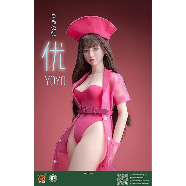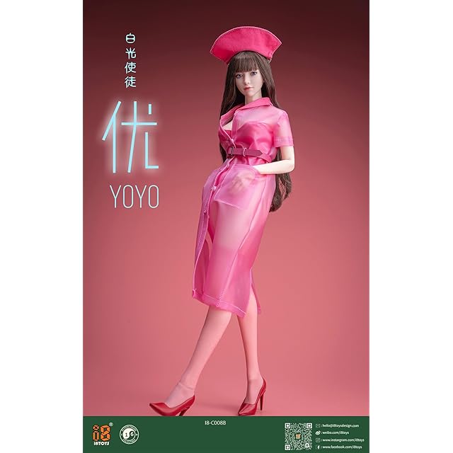 [TOYBARJAPAN ]1/6スケール フィギュア用 i8TOYS I8-C008 ナース看護師 ジュニア美少女 アクションアイ アジアン美人女性ヘッドと服と靴ハイヒールセット(素体は含みません) (ピンクB)