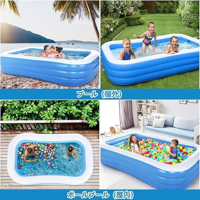 【2025新登場 三層で極厚 スイムセンター】大型プール ビニールプール 家庭用 子供用 大型 ファミリー 水遊び 長方形 折り畳み式 収納便利 耐高温 耐摩擦 安全無毒 屋内用 アウトドア用 猛暑対策 簡単な排水 日本語説明書付き (Mサイズ、210x140x56cm)