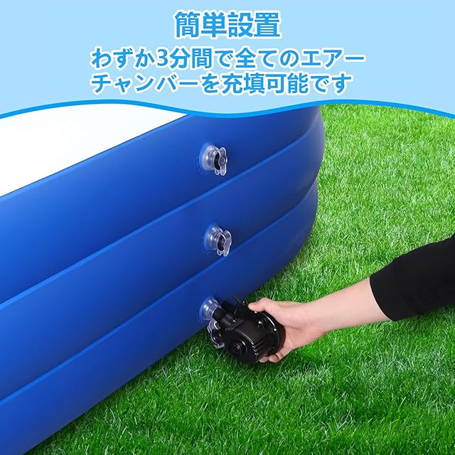 【安定性抜群のプール】3つの独立エアーチャンバーを搭載しており、電動ポンプ(別売)で3~4分で簡単に充填することができます。各チャンバーに二重のエアインレットとフリーフロー弁を装備し、空気を均等に分配してバランスと安定性を確保しながらエア漏れを防止することができます。大きな排水口付きで素早く水を排出でき、片付けが驚くほど簡単です!