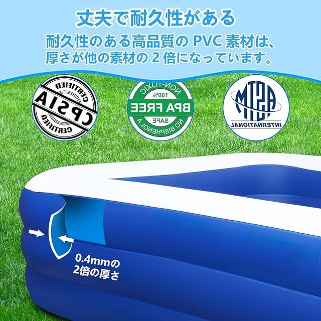 【安全で耐久性抜群のプール】BAOJIADA 子供プールは安全で環境に優しいPVC素材を使用し、BPAフリーで国際的なおもちゃの安全基準を満たしています。市場のほとんどの製品より2倍厚い素材を採用することで、破損リスクを低減し、長寿命を実現しています。お子様がプールを舐めても安心です。大人から子供まで安全にご利用いただけます。