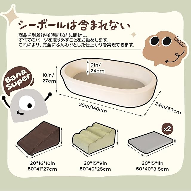 【高密度素材で安心安全】高弾性スポンジと柔らかい布地を採用。幼児の飛び乗り・転がり・ジャンプに耐える耐久性を実現。衝撃吸収性に優れ、転倒時のケガ防止に配慮。隠しファスナー設計で肌への接触部分を滑らかに仕上げています。