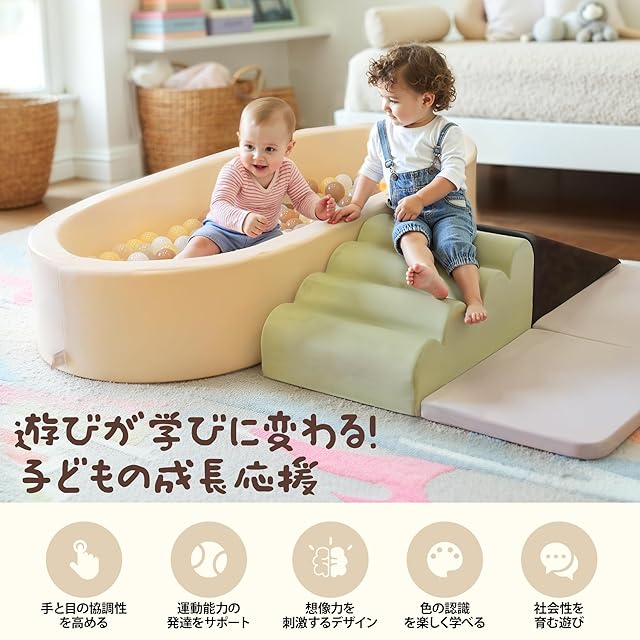 【発達を促す知育設計】積み重ね/色分け/形状認識で空間認知力を養い、登り降り運動でバランス感覚・体幹を強化。友達との共同遊びを通じて社会性と創造性を自然に育む、成長支援型玩具です。