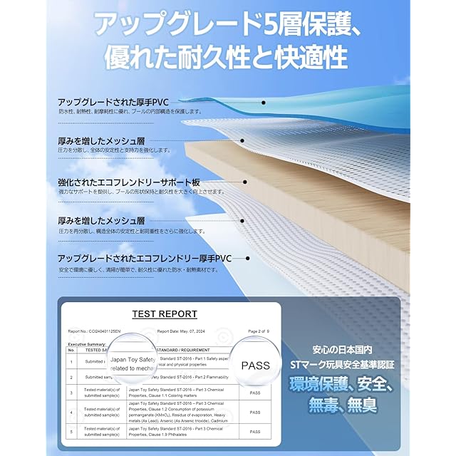 【ST安全認証取得、安全で安心】暑い夏、お子様の涼み方にお困りではありませんか?Alwgreenの大型プールは、日本国内で『ST安全認証』を取得した子供用プールです。ドイツ製の環境に優しい素材を使用し、安全で無毒で、水遊びや泳ぎの練習にも最適です。「全新の海浪デザイン」海をおうちに持ち帰り、自宅にいながら、いつでも海の涼しさと広がりを感じることができます。Alwgreenの家庭用プールで、安全で楽しく、そして涼しい夏をお過ごしください!