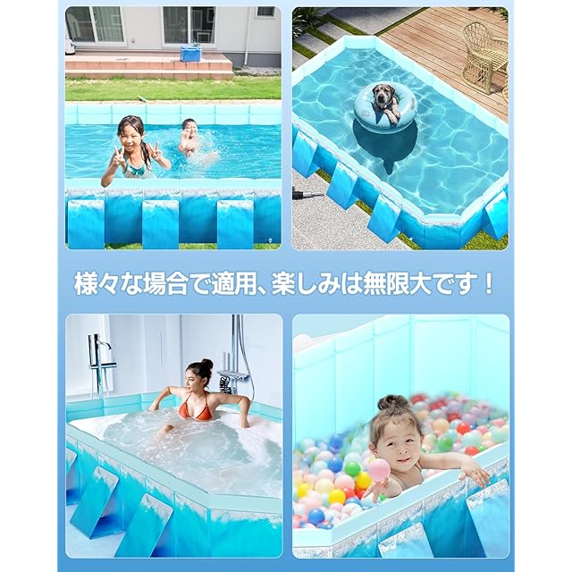 【一歩先行く!6つの大きな排水口、排水が迅速、収納便利】Alwgreenは、常により良い製品を提供することを使命とし、絶え間ない改善を続けています。Alwgreenの超大型家庭用プールは、耐久性のある設計だけでなく、利便性も考慮されています。側面と底部に合計6つの大きな排水口を設置し、排水速度が速く、排水が簡単で徹底的です。従来品は排水に3時間かかりますが、Alwgreenは1時間で完全に排水できます。さらに、従来品の排水不完全や清掃などの問題も完璧に解決しました。空気入れ不要プールは簡単に折りたたむことができ、コンパクトに収納・キャンプや旅行に適しているほか、自宅での収納スペースを確保することができます。