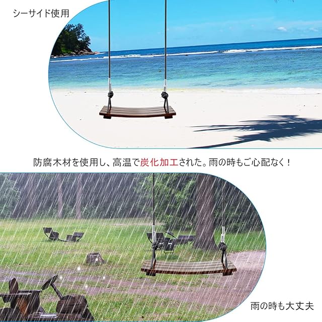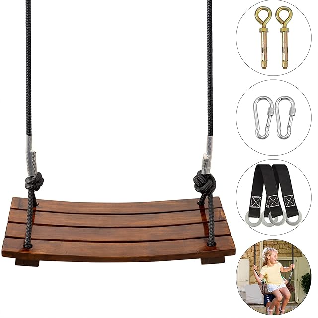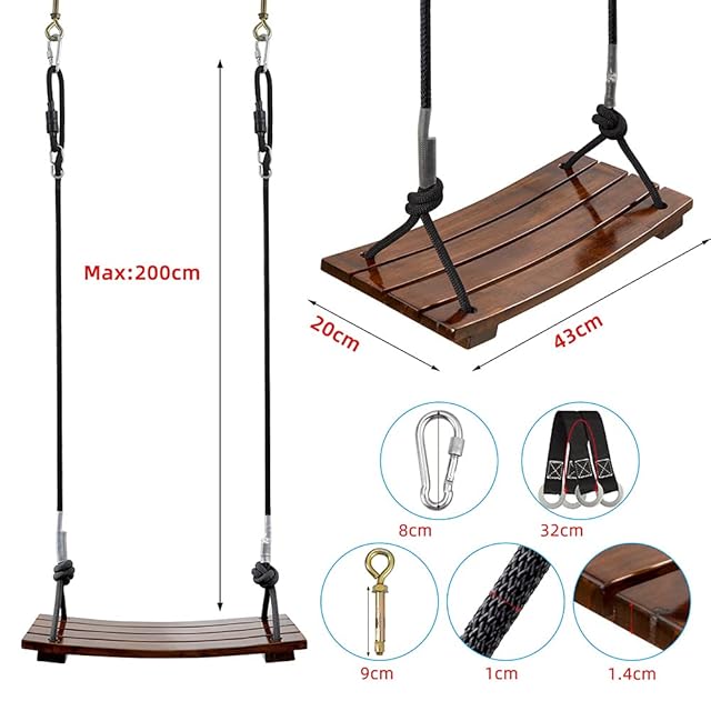 Leweet 木製ブランコ 屋外 ブランコ 大人 子供 屋外 遊具 ブランコ 室内 吊り下げ ぶらんこ 室内 遊具 耐荷重約200kg 完全なアクセサリ 取り付けが簡単 屋外の森、中庭、倉庫、公園などで使用可能 (43CM)