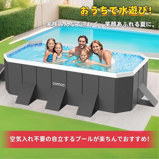 【使いやすい&空気入れ不要】このプールは空気を入れなくてもよい、空気を入れないから、出した後広げて、組み立てる簡単で、すぐプールが作れる、組み立てる後はただ水を入れてのみで使える。