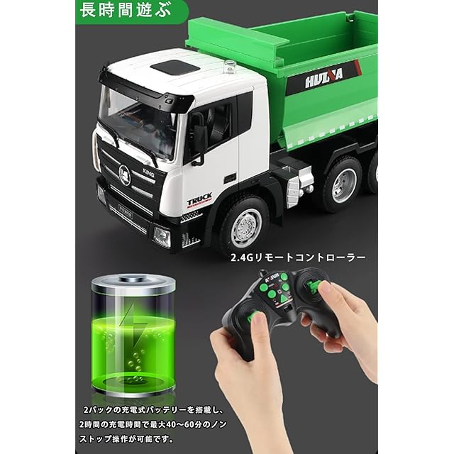 【1:18 RCダンプトラック 】:1:18スケールフル機能リモコンrcダンプトラック、ユーザーは多方向で走行するリモコントラックを完全に制御でき、前方、後方、左折、旋回が可能です右、バケツの上下。