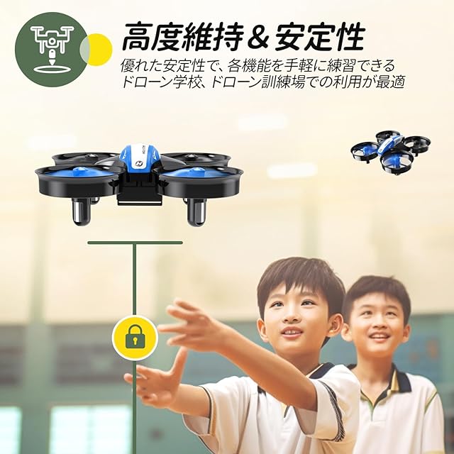 【初心者向け】6軸ジャイロを採用した気圧センサー高度維持機能により、機体はスロットルを離れた位置で高度を維持します。ワンキー起動/着陸ボタンが付き、操作が簡単で子供でも心配なし。モード1とモード2があり、操作性の好みと需要にあわせて切り替えます。