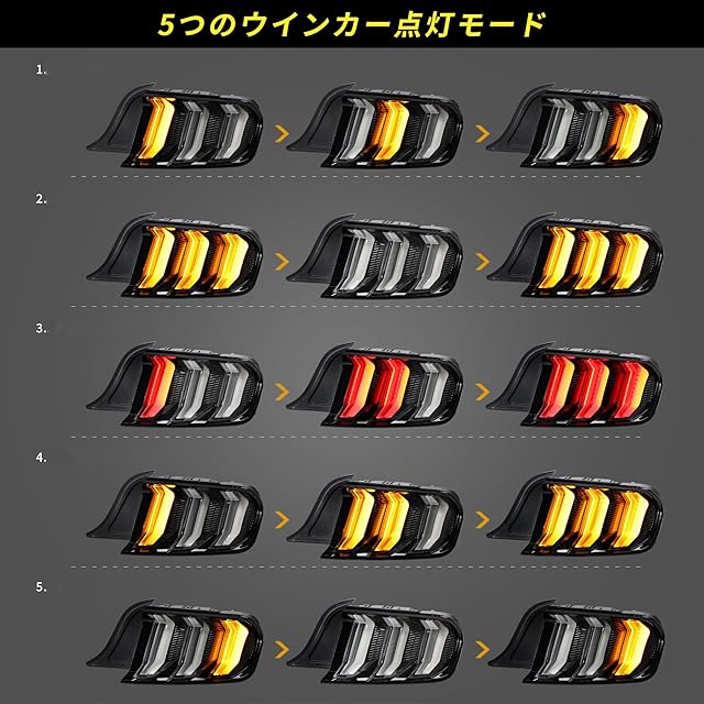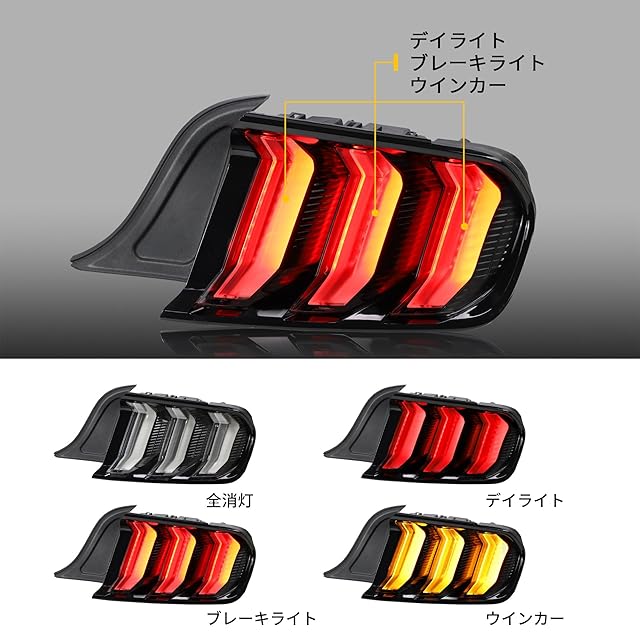 「高輝度テールランプ」:デイライト+ウインカー+ブレーキライト。すべてのライトは高輝度LEDを採用し、それぞれの役割を完璧に果たせます。特にウインカーは5つの点灯モードを含め、レッドやイエローに切り替えることが出来ます。車全体のオシャレ感を引き立てるだけでなく、運転の安全性を高めます。