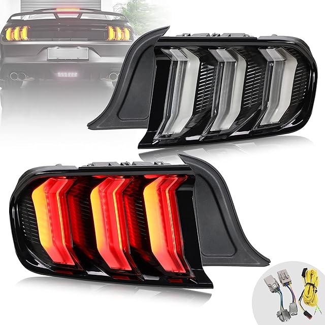 VLAND フォード マスタング テールランプ 流れるウインカー 全LED 5つの点灯モード テールライト 左右セット 純正交換用 2015-2020年 For Ford Mustang 2015-2020 LED Taillights(クリア)