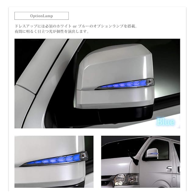 ハイエース 200系 6型 7型用 流れるドアミラー ウインカー レンズ AVEST VerticalArrow オプションランプブルーx塗装カラー070