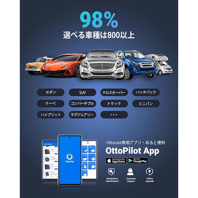 【安心サポート】弊社には、専門知識の豊富な技術チームが在籍していますので、サポート体制は万全です。製品は1年保証付きですので、万が一の際も安心です。使用方法などお困りの際には何でもお問合せください。また、故障の際には無償交換対応いたします。また、オットキャストには専用アプリ「OttoPilot」があがりました。Google Playストアか、AppStore内から「OttoPilot」で検索してインストールできます。設定方法、ファームウェア更新などは充実しています。