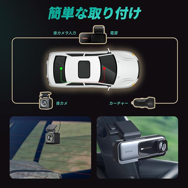 【170度広角・綺麗に取り付け】フロントとリアのカメラに170度と150度の超広角を使用して、最大6車線の範囲をカバーします。ミニボディは視界を遮らず、静電フィルムと3M接着剤で安定性ときれいにないます。