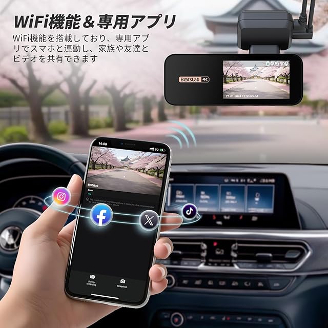 【最新4K UHD超高精細記録】BOTSLAB ドライブレコーダー4K 前後カメラ 170度広角視野 SONY製IMX415センサー採用 小型ドラレコ ADAS安全運転支援 WDR超強暗視 2.4G/5G WiFi対応 駐車監視機能 内蔵GPS 上書き録画 全国LED信号機対策 SDカード付属(64GB)