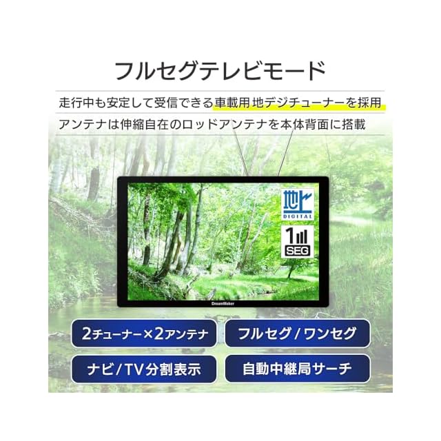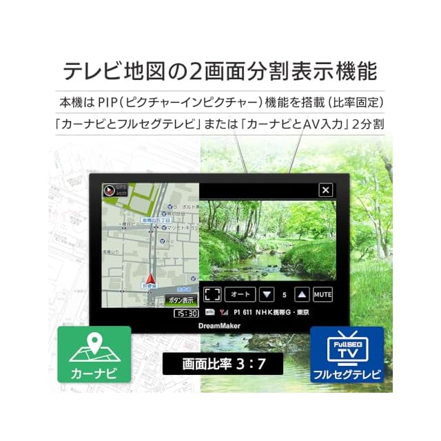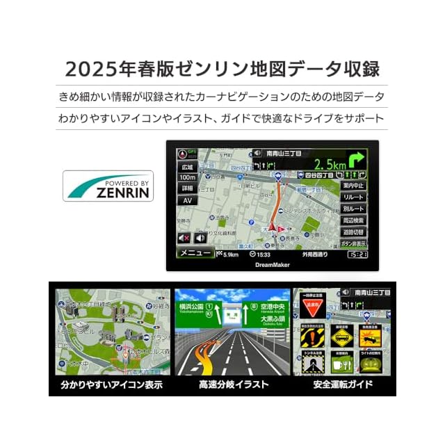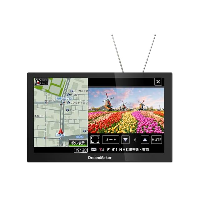 DreamMaker フルセグ ポータブルナビ 7インチ ナビゲーション 2025年 ゼンリン地図 みちびき バックカメラ 対応 るるぶデータ 12V 24V [PN0708A]