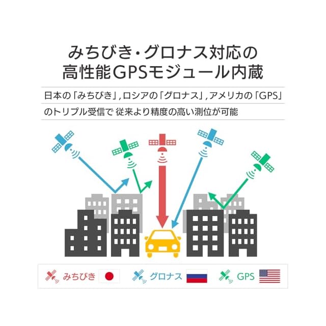 【フラットディスプレイと高性能CPU】フラットディスプレイは静電式タッチパネルを採用。スマートフォン感覚でフリックやドラックなど、直感的な操作ができます。【 GPS衛生「みちびき」対応 】衛生測位システム「みちびき」「グロナス」「GPS」のトリプル受信で精度の高い測位が可能。