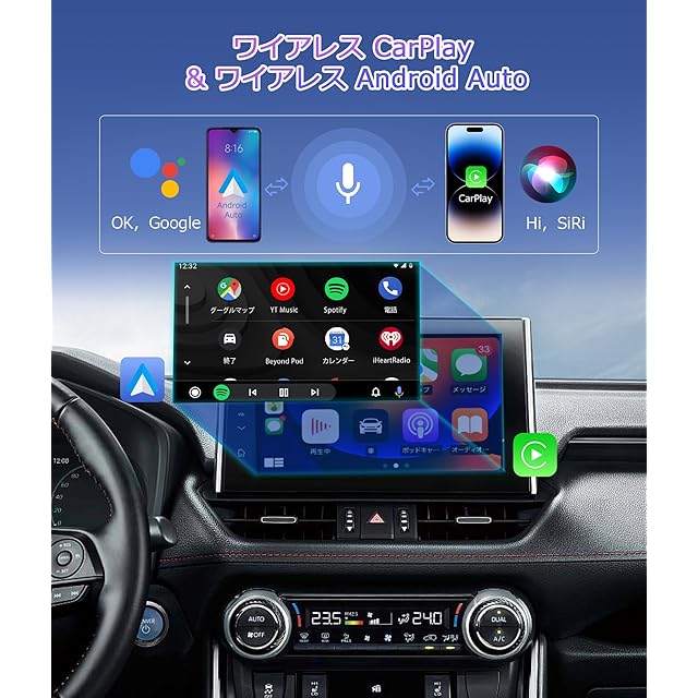 【多機能と高い互換性】DRIVIM CarPlay AI Boxは、多様なアプリケーションに対応し、車内でのエンターテインメント体験をさらに充実させます。YouTubeやNetflixなどのストリーミングサービスから、Googleマップや音楽アプリまで、幅広いアプリをサポート。また、さまざまな車種に対応しており、高い互換性を誇ります。これにより、どのような車でも簡単に最新のエンターテインメント機能を楽しむことができます。