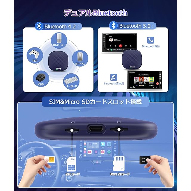 【簡単接続と安定した通信】DRIVIM CarPlay AI Boxは、Bluetooth 5.0とWi-Fi 5GHzをサポートし、安定した通信環境を提供します。車内での接続は非常に簡単で、複雑な設定は一切不要です。これにより、ユーザーはすぐにシームレスな接続を楽しむことができ、ドライブ中のエンターテインメントやナビゲーションがより快適になります。