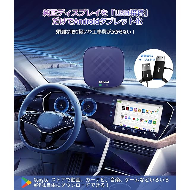 DRIVIM CarPlay AI Box 【2024年10月進化アップデート】カープレイ Android 13.0 アダプター 画面2分割 純正有線CarPlay車両専用 簡単取付 Bluetooth通話 GPS内蔵 YouTube Netflix Hulu視聴対応 ワイヤレスCarPlay Android Auto カーナビタブレット化 音楽再生 Siri メッセージ対応 (4+64GB)