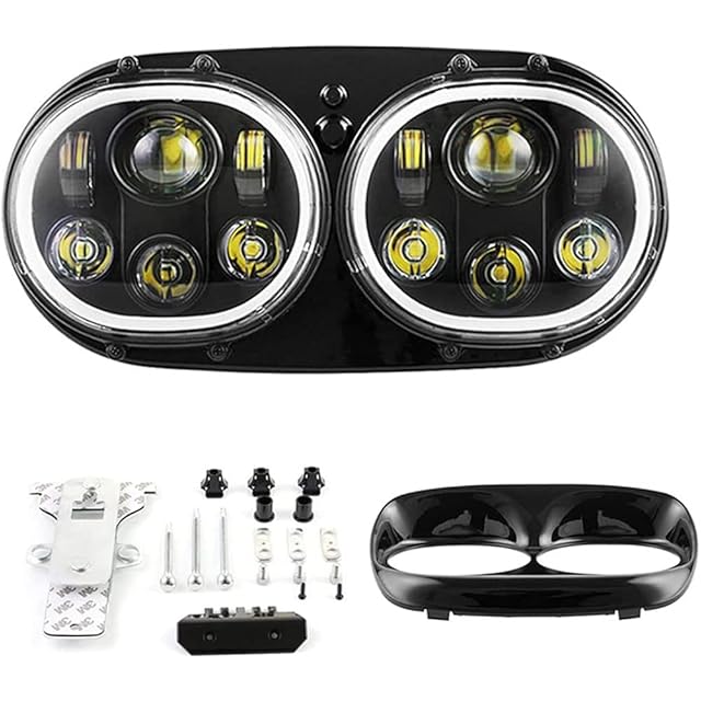Ranzek バイク ダブル LEDヘッドランプ 5 3/4" 90W LED ヘッドライト 天使 目 1セット バイク ヘッドライト 5.75インチ ハローと ハーレーロードグライドデュアル 04-13 用 (A)