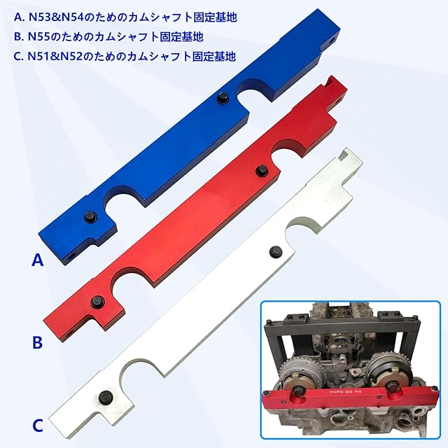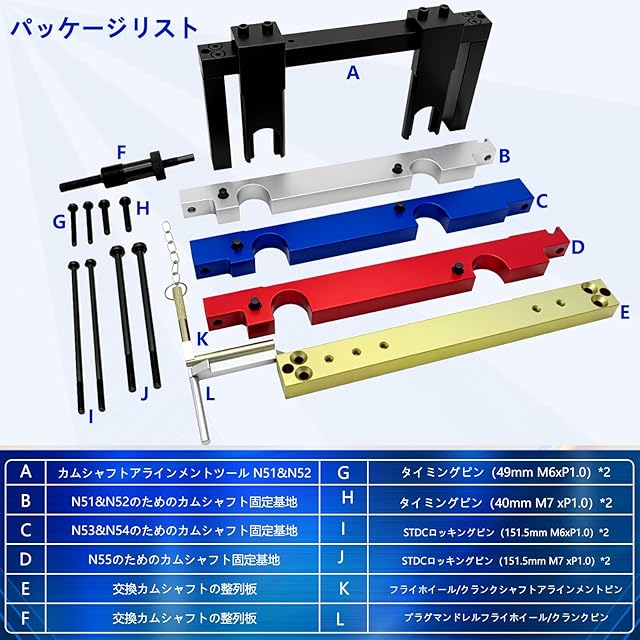 【機能】BMW用エンジンカムシャフトタイミングチェーンアラインメントロックツールキットは、エンジンタイミングを確認して調整しに最適です。カムシャフトアジャスターにプリテンションをかけ、カムシャフトをロックし、タイミングチェーンとタイミングベルトを取り外しまたは取り付け、カムシャフトを正しい位置に合わせます。