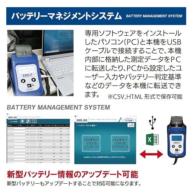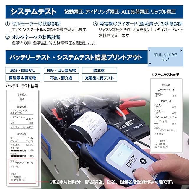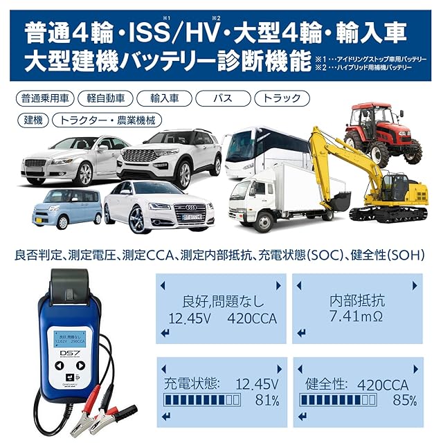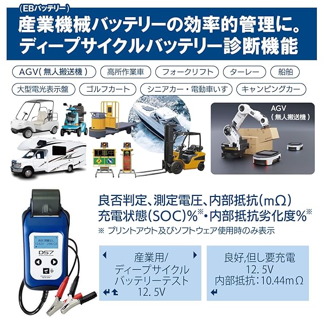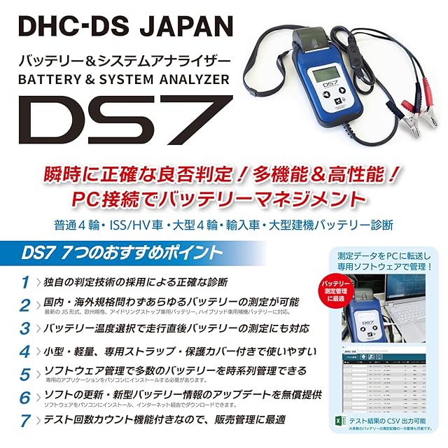 バッテリーテスター DS7 ver2.0 (USB-Type C) 鉛蓄電池 アイドリングストップ ハイブリッド補機 ディープサイクルバッテリー LNバッテリー対応 プリンター CCA SOH SOC 内部抵抗 6V&12Vバッテリー 12V&24V充電 始動システム アナライザー PCソフトウェア管理