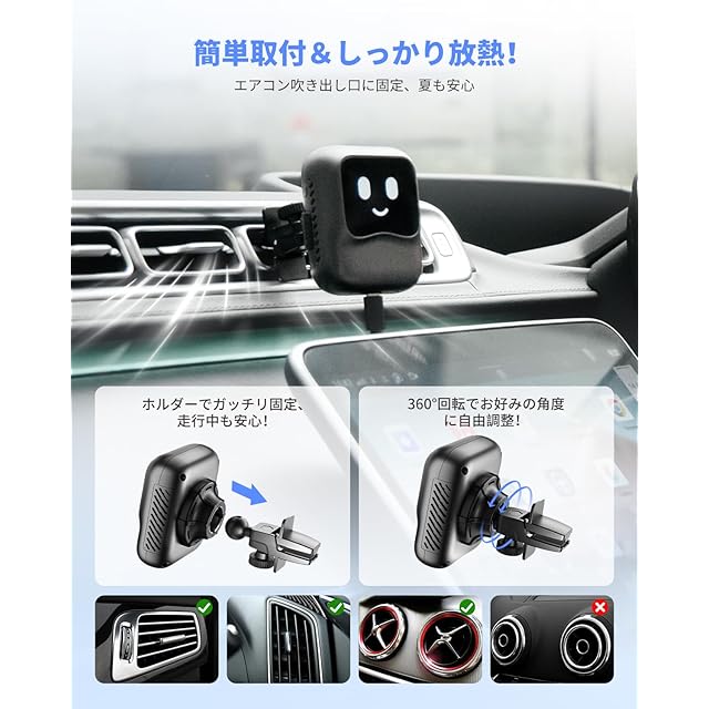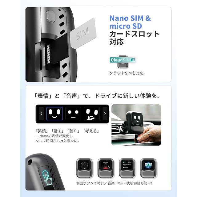 【個性的なロボットデザインで車内を彩る】かわいらしいロボット型デザインで、車内の雰囲気を一新。表情豊かなディスプレイで、ドライブがもっと楽しくなります。