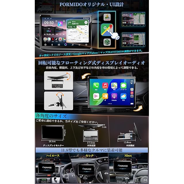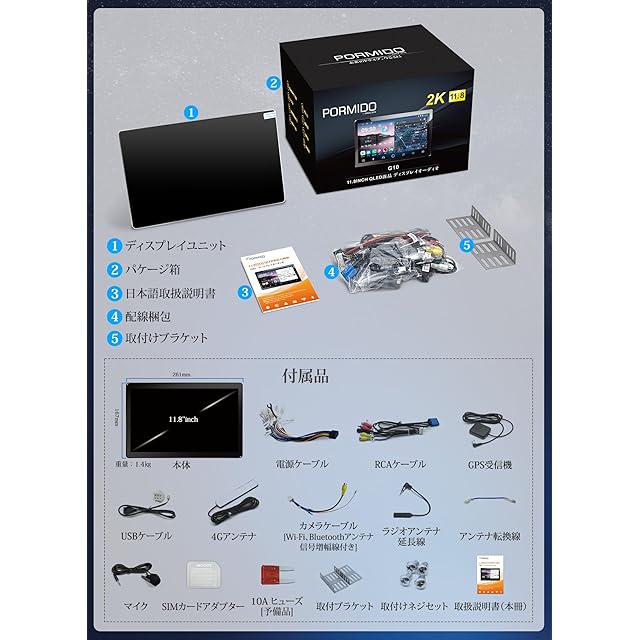 PORMIDO 新登場11.8インチ 2K大画面QLED液晶 Androidカーナビ:8コア6+128GB【Youtube、Netflixなどネット動画が視聴できるディスプレイオーディオ】ワイヤレスCarPlay/Android Auto/ミラ―リング対応 1DINカーオーディオ Bluetooth5.2/FM/AM/DSP/GPS搭載 USB動画音楽再生 バック連動 技適取得済み品【G10】