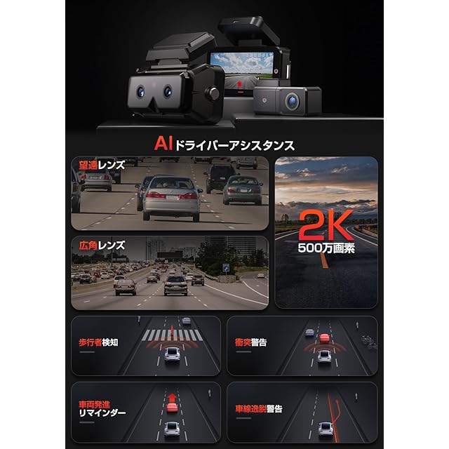 【業界初 望遠+広角 全方位3カメラ録画】 AKEEYO EYES 2K ドライブレコーダー 前後3カメラ STARVIS 2搭載 音声コマンド ADAS+BSD運転支援機能 GPS内蔵 HDR対応 小型 超強暗視 24時間駐車監視 Gセンサー 緊急録画 APP対応 技適認証済 LED信号対応 ノイズ対策 日本語説明書