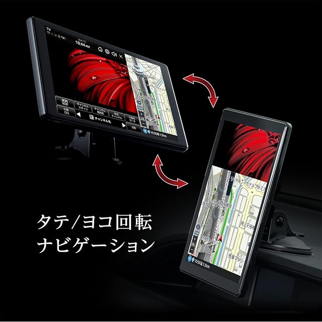 モニターの回転機能でタブレットのようにタテとヨコでの表示が可能です。 ナビゲーション時には、地図の確認が早くでき、案内を見落としません。